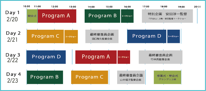 | 入選作品プログラム券 | 最終審査員企画・特別企画 | 全日共通パス(引換券) | ||